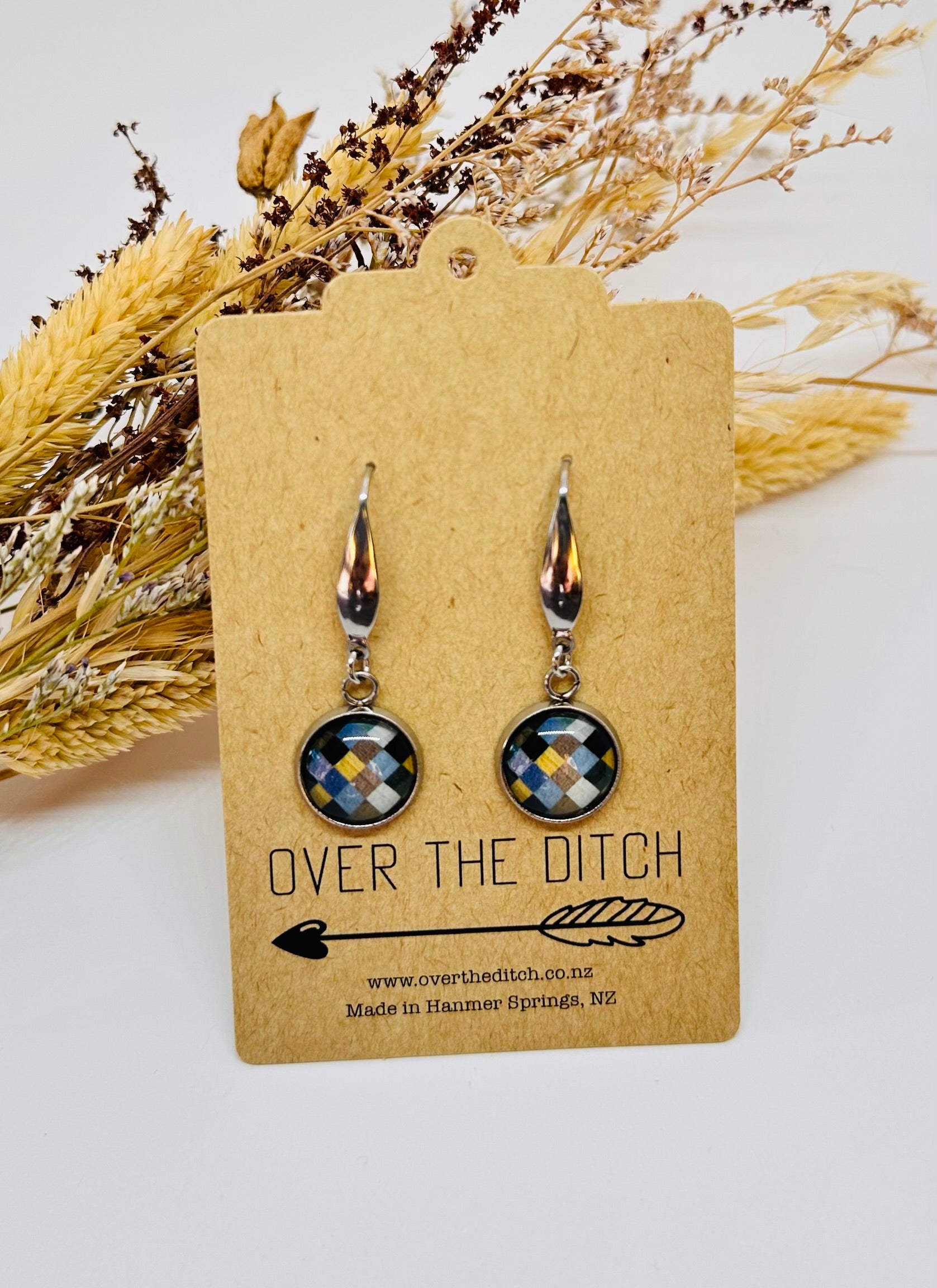 Our new pendant earrings featuring your favourite domes, set in hypoallergenic stainless steel hook bezels—perfect for sensitive ears.
