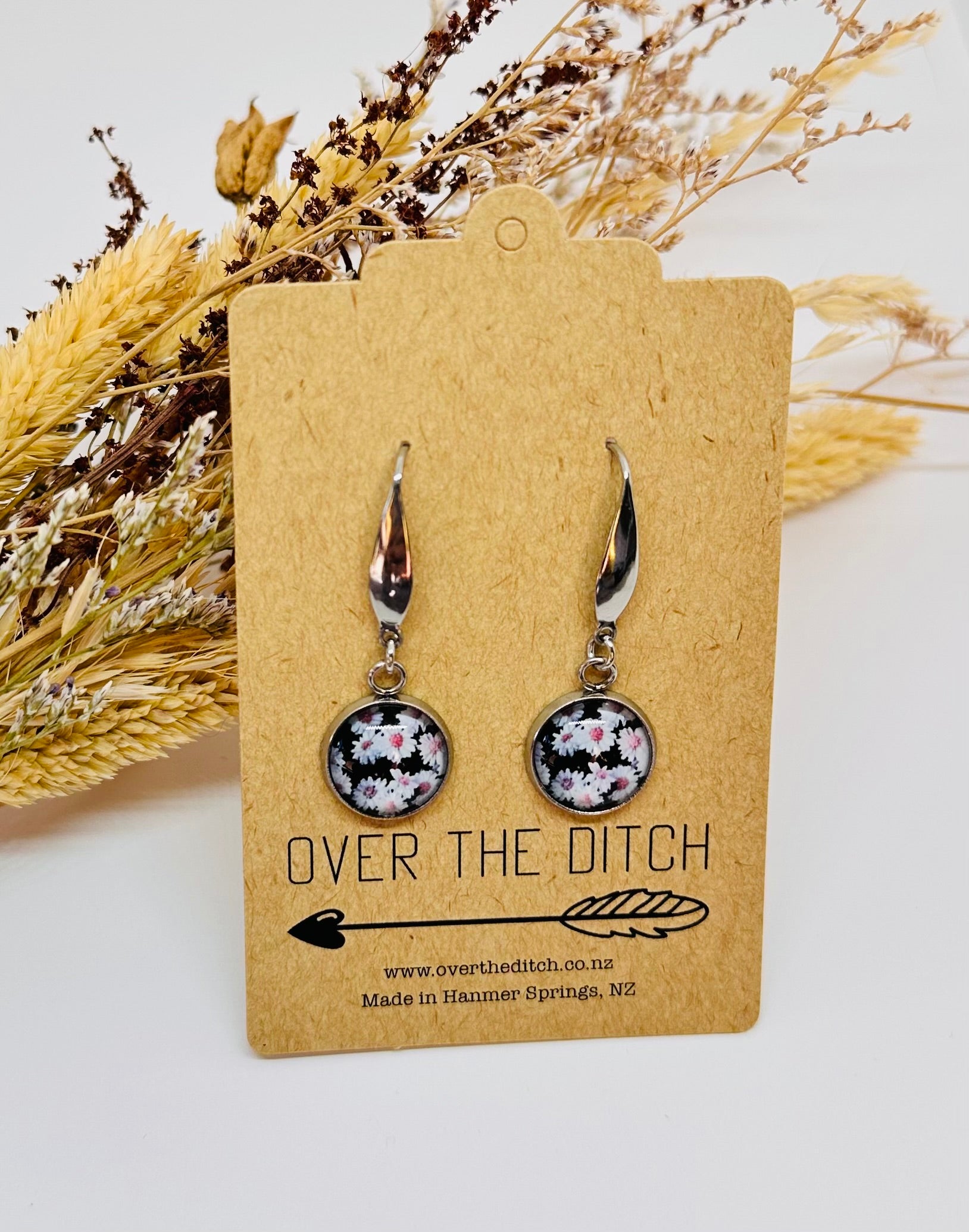 Our new pendant earrings featuring your favourite domes, set in hypoallergenic stainless steel hook bezels—perfect for sensitive ears.